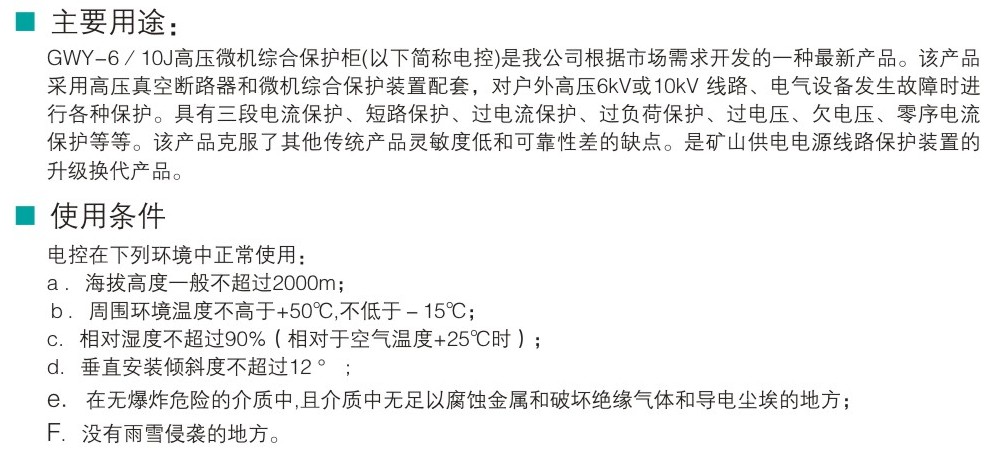 GWY-6/10J高壓微機綜合保護柜